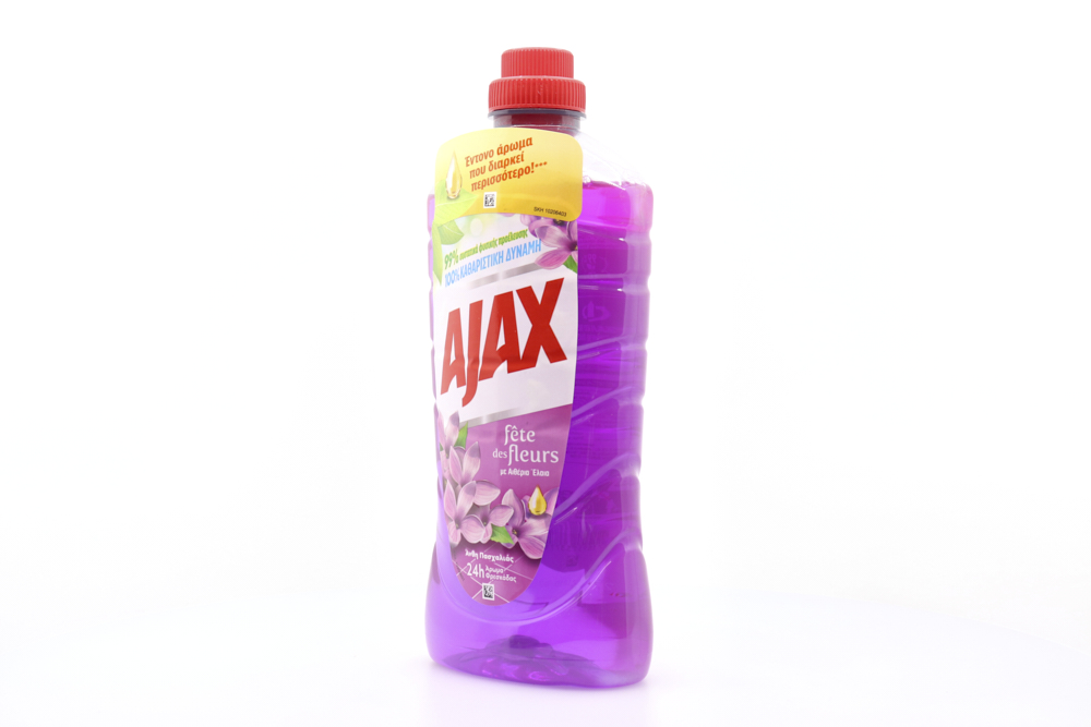 Το Ajax Fete des Fleurs Άνθη Πασχαλιάς Υγρό Καθαριστικό Πατώματος προσφέρει έντονο άρωμα φρεσκάδας, που διαρκεί 24 ώρες. Το Ajax πολυκαθαριστικό προσφέρει 100% καθαριστική δύναμη.