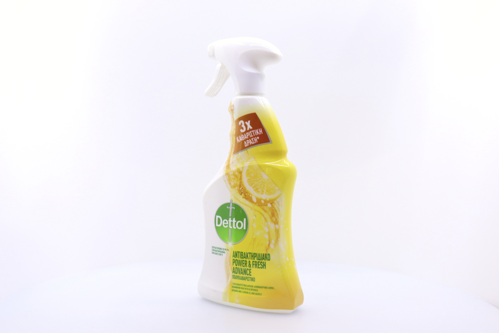 Το καθαριστικό spray γενικής χρήσης Dettol χαρίζει εξαιρετική καθαριότητα . Είναι ένα ισχυρό αντιβακτηριδιακό πολυκαθαριστικό με απίστευτη φρεσκάδα. Η επαναστατική του σύνθεση αντιμετωπίζει αποτελεσματικά τα λίπη και τη μουτζούρα αφήνοντας τις επιφάνειες αστραφτερά καθαρές. Εξουδετερώνει το 99,9% των βακτηριδίων αφήνοντας το σπίτι σας με ένα άρωμα φρεσκάδας και καθαριότητας. Με άρωμα Λεμόνι και Λάιμ.