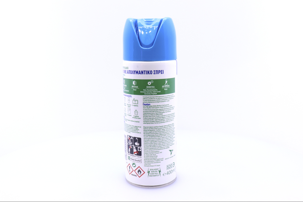 Συστατικά: Ανά 100γρ περιέχει 58,00g αιθανόλη, 0,10g Σακχαρινικό αλκυλ-οδιμεθυλ-ο-βενζ-αμμώνιο. Περιέχει απολυμαντικό, άρωμα.